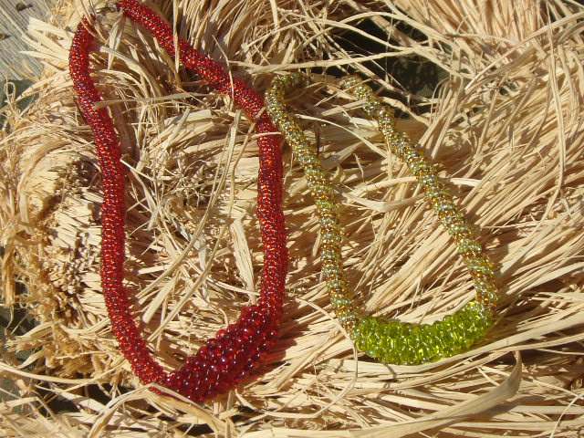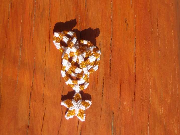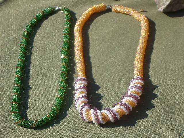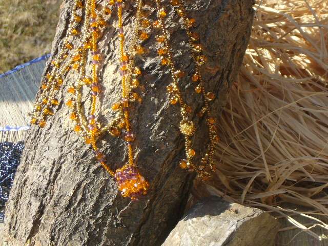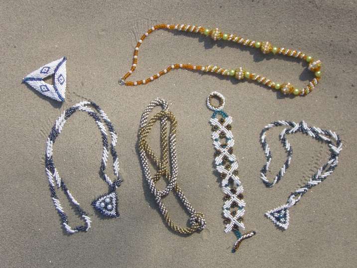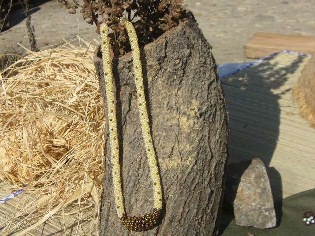 készített gyöngyből. Ámulatba ejtett a spirálban tekeredő nyaklánc, és a sok csecsebecse.